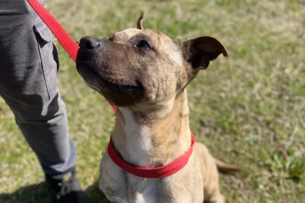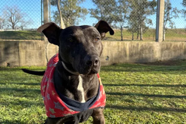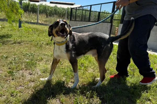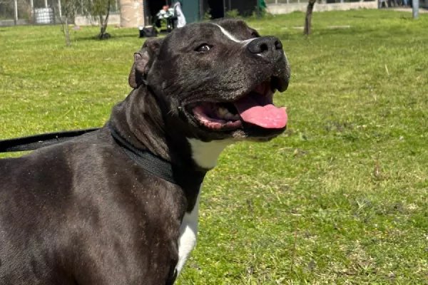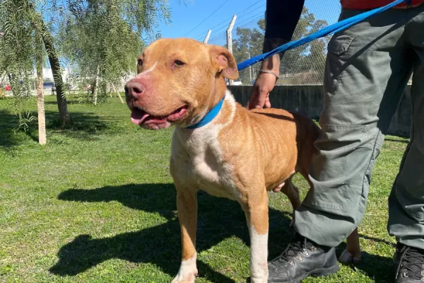 Beto: macho porte mediano cruza pit, mucha fuerza requiere trabajos para adaptarse a la correa y a los paseos.
