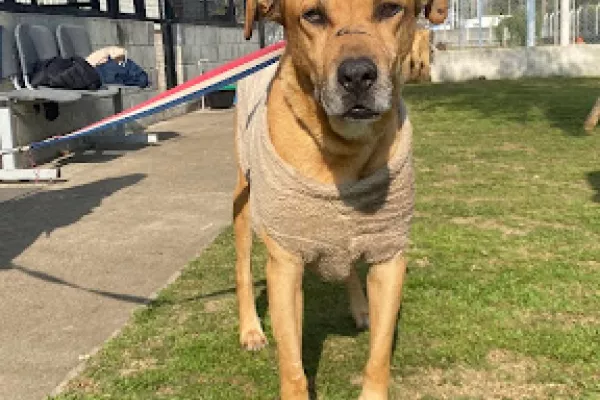 Terry / Leon: es un macho joven de porte grande. Por su carácter debe ser el único animal en casa, requiere trabajo de vinculación, se está adaptando a la correa.