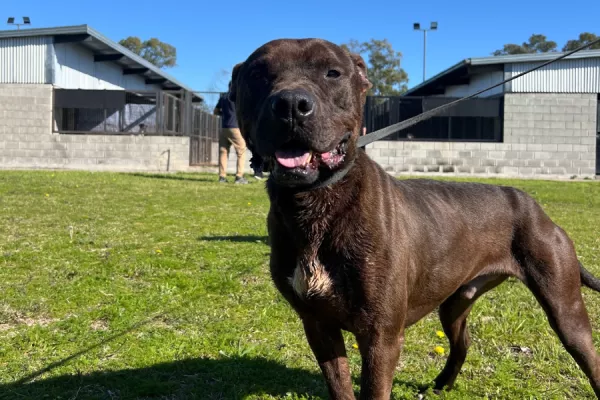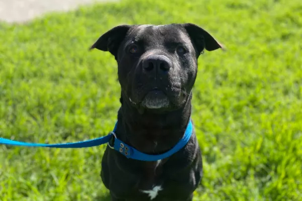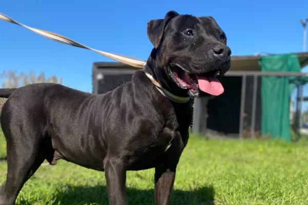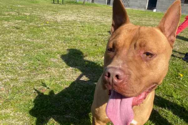Tyson: es un macho adulto de porte mediano a grande cruza de pitbull.