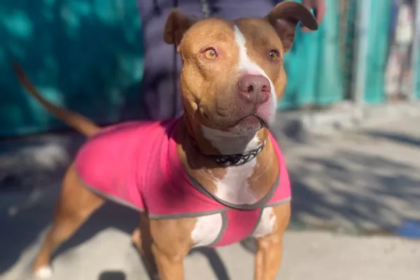 Alfalfa: es un pitbull macho de porte mediano. Aún se están evaluando sus habilidades para la convivencia con otros animales.